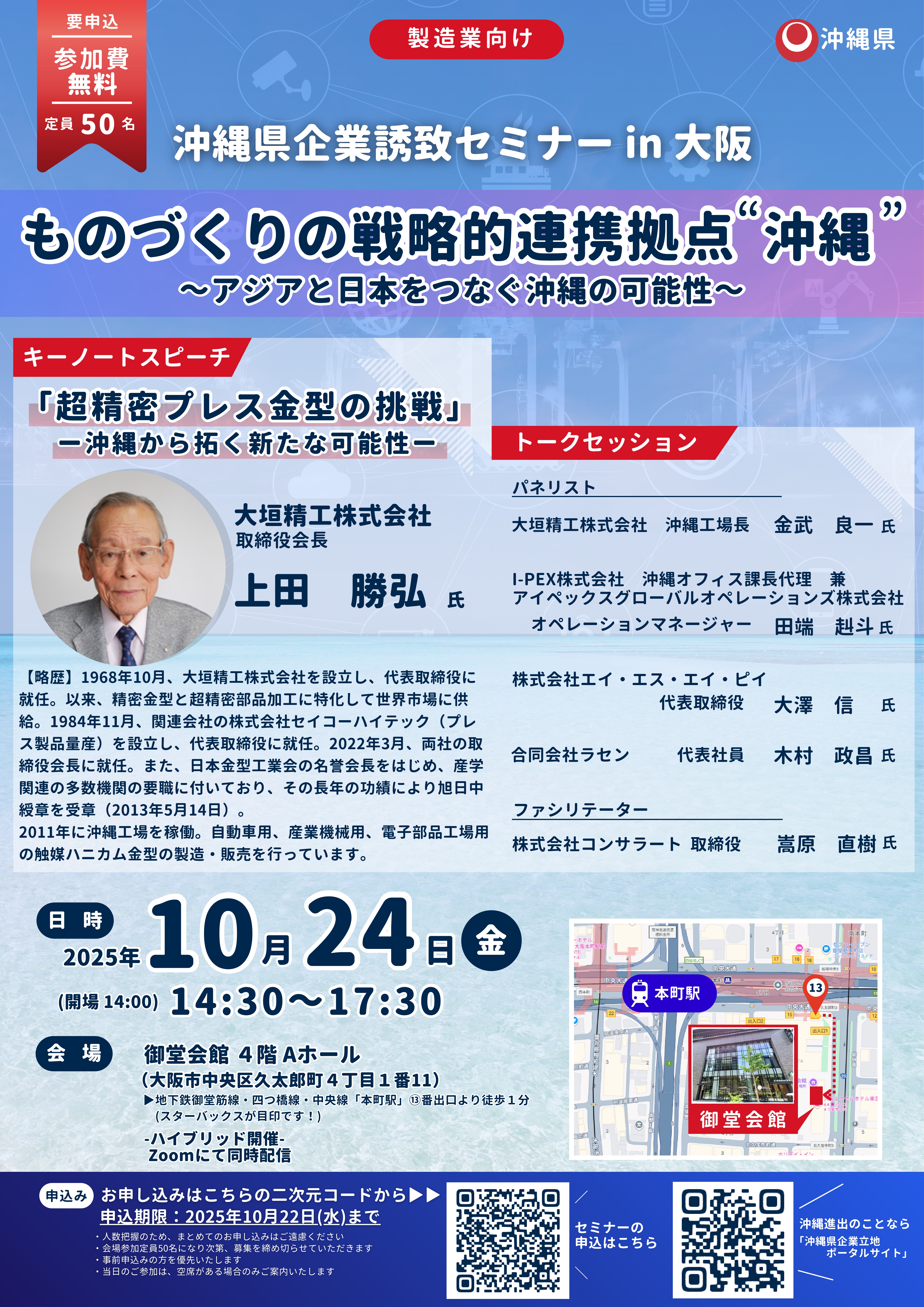 大阪の御堂会館にて、「沖縄県企業誘致セミナーin大阪」を開催いたします!
